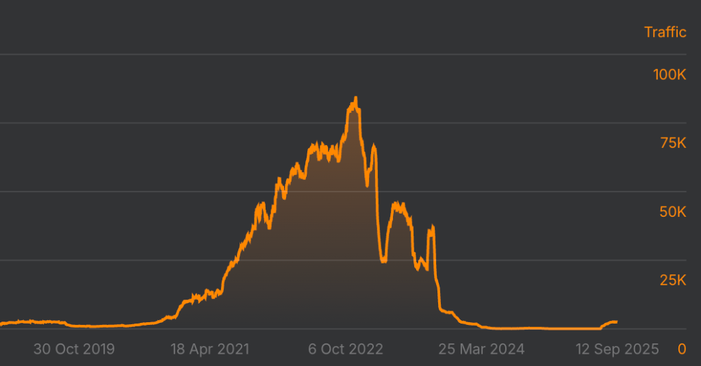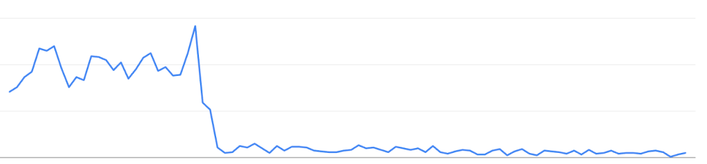 It was 09:30, I was in a new coworking spot in Amsterdam, ready to cowork with my buddy who has a SaaS and I saw an anomaly in my commissions. I logged into Google Search Console and saw graphs for 5 of my 6 websites like this…
